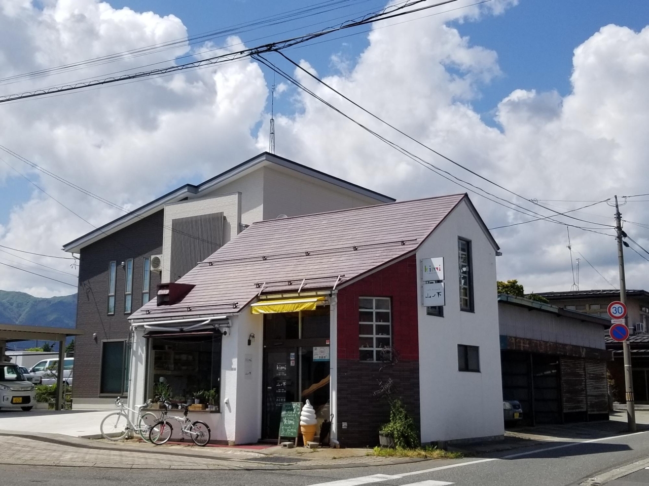 長井駅からすぐ。三角屋根の可愛いお店が《Cafe & Lunch 山ノ下》さんです。